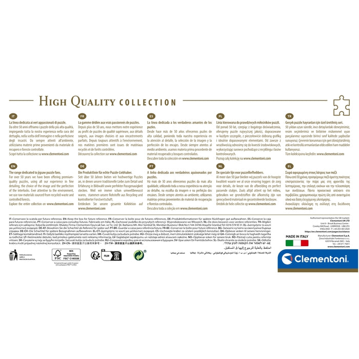 En çekici görseller, en büyük ebat çeşitliliği ve Clementoni kalitesi imzası ile, tüm dünyadan yapboz severler için altın standart olan bir seri.