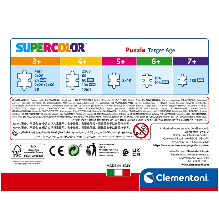 Çevre farkındalığına ciddi şekilde değer veren Clementoni, geri dönüştürülmüş malzemeleri kapsamlı şekilde kullanır ve kirletici içeren bileşenlerden uzak durur. İtalya’da üretilmiştir.
