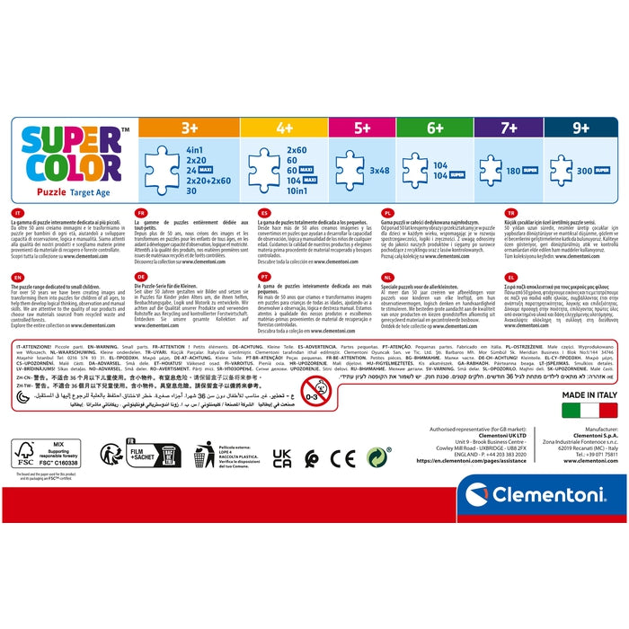 Çevre farkındalığına ciddi şekilde değer veren Clementoni, geri dönüştürülmüş malzemeleri kapsamlı şekilde kullanır ve kirletici içeren bileşenlerden uzak durur. İtalya’da üretilmiştir.